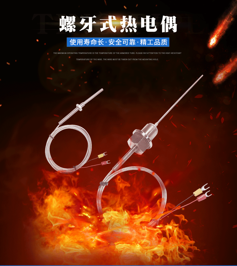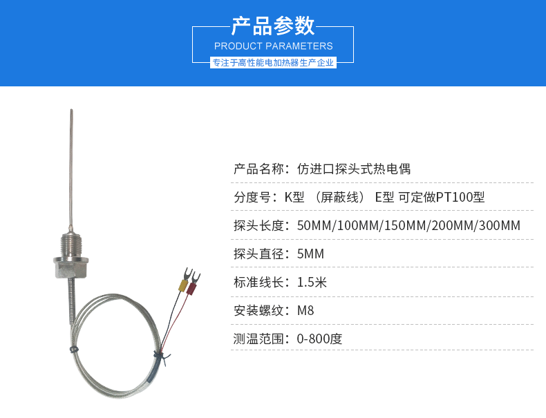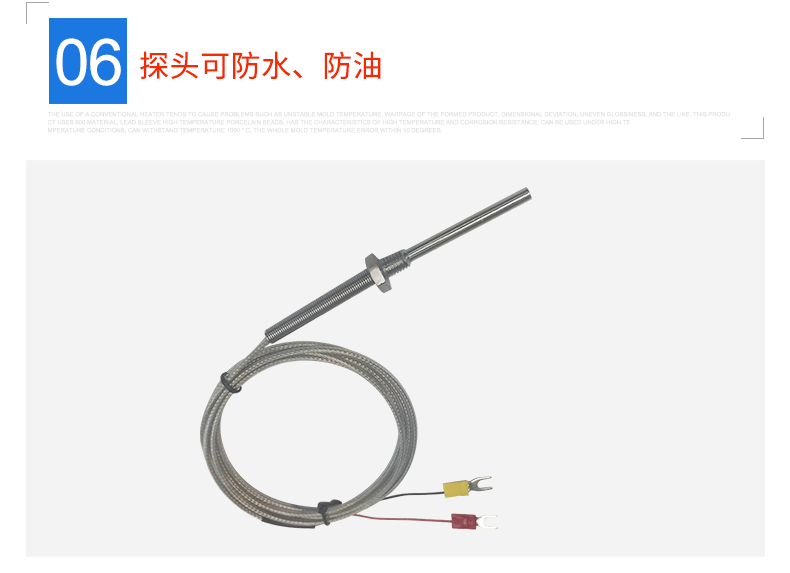 M8螺牙式熱電偶特點(diǎn):探頭已做密封!可防水防油!管的材料是304#不銹鋼!